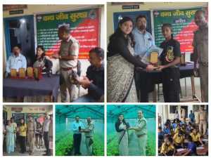 टनकपुर (चम्पावत)। शनिवार को बस्तिया अनुभाग के कार्मिकों द्वारा राजकीय उच्चतर माध्यमिक विद्यालय में प्रधानाध्यापिका स्वास्तिक भट्ट की अध्यक्षता में वन्यजीव सुरक्षा सप्ताह के अंतर्गत जागरूकता कार्यक्रम आयोजित किया गया। जिसमे वन्य जीव सुरक्षा, मानव वन्य जीव संघर्ष और पर्यावरण संरक्षण के विषय में विस्तार से जानकारी देते हुए जागरूक किया गया।