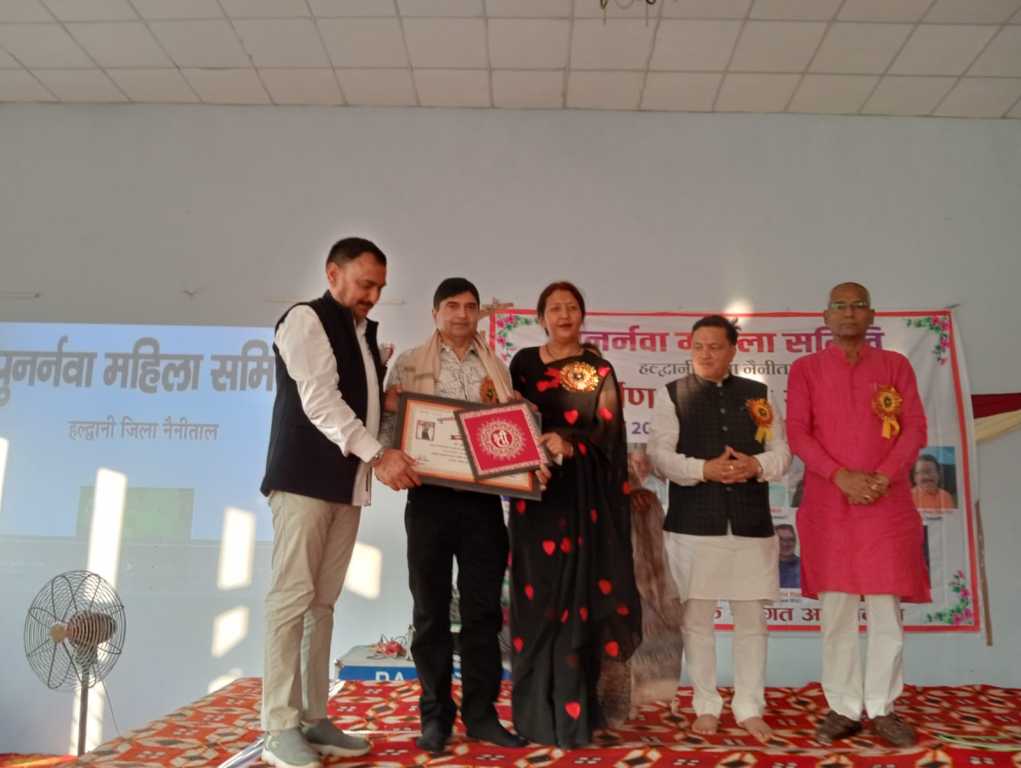 हल्द्वानी में पुनर्नवा महिला समिति द्वारा उत्कृष्ट कार्य के लिए डॉ रखोलिया को किया गया सम्मानित।
