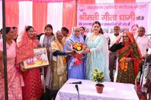महिलाओं को संबोधित करते हुए गीता धामी ने कहा सीएलएफ की महिलाएँ केवल समूह की सदस्य नहीं बल्कि परिवर्तन की वाहक हैं। उन्होंने कहा “समूह से शक्ति मिलती है और यही शक्ति समाज को नई दिशा देती है; आज महिलाएँ घूंघट से निकलकर आत्मनिर्भरता की ओर बढ़ रही हैं और पारम्परिक धरोहर को संजोते हुए अपने उत्पादों को देश-विदेश तक पहुँचा रही हैं।” उन्होंने कहा कि प्रधानमंत्री नरेन्द्र मोदी के नेतृत्व में भारत के पाँचवीं सबसे बड़ी अर्थव्यवस्था बनने की यात्रा में महिलाओं की भूमिका निर्णायक रही है। प्रधानमंत्री के नेतृत्व में देश आज तेज़ी से पुरुष-प्रधान व्यवस्था से महिला-प्रधान विकास की ओर बढ़ रहा है, और इस परिवर्तन की धुरी स्वयं महिलाएँ बन रही हैं।